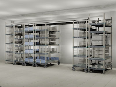 Metro's Top-Track High-Density Storage System can increase the storage capacity of a given area by 30% to 50%. This system allows more storage units to fit in a defined space. A movable, open aisle allows full access to each shelving unit, thus eliminating hard to reach or "dead" spaces. The overhead track system guides the mobile units and opens an access aisle between any two units whenever it is needed. The track is above the storage units enabling easy access for employees or for utility carts, simplifying the material handling task. The Top-Track System is "ADA Compliant" and compatible with Super Erecta, Super Adjustable, Super Erecta Pro, MetroMax i and MetroMax Q shelving systems.